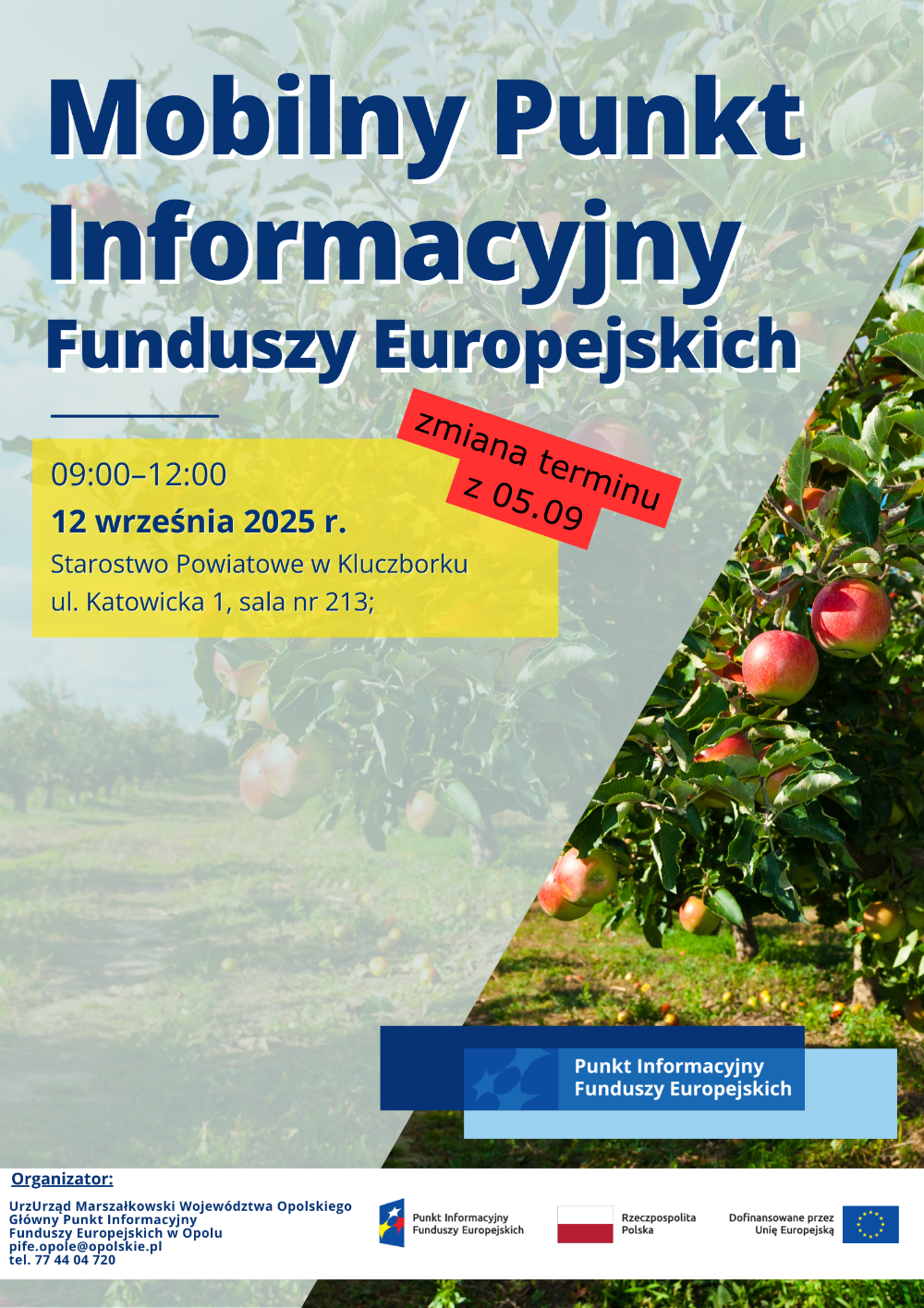 Mobilny Punkt Informacyjny funduszy europejskich odbędzie się w Starostwie Powiatowym w Kluczborku 12 września 2025 r., w godz. 9:00-12:00. Podczas dyżuru przeprowadzone...